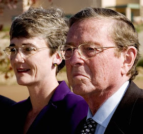 Domenici's family, friends and staffers joined about 600 supporters. Janet Napolitano, left, is a former Albuquerque resident, Sandia High School graduate, was a staffer when Domenici chaired the Senate Budget Committee, and until this week, the Democratic Governor of Arizona. She resigned to be Secretary of the U.S. Department of Homeland Security and was a featured speaker. Thelma Domenici, right, is the Senator's sister and the Albuquerque Journal's etiquette columnist.