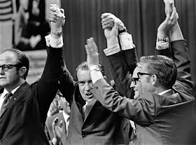 Nixon beat his Democratic rival, Sen. George McGovern, by the largest landslide in American Presidential political history, yet there were dignitary seats available about 200 feet from the podium.
