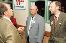Former Albuquerque police officer John Bode, left, operator of Bode Aviation and Bode Aero at Double Eagle Airport was in the audience. He has a couple of lawsuits pending, one in state courts, currently under consideration by the court of appeals and a civil rights suit in federal court against Chávez' administration. The suits claim retaliation for refusing to pay to play. Bode declined an offer to make a free detour "vacation" trip during an already reduced rate flight to Mexico during Chávez' short lived U.S. Senate run in 2007.