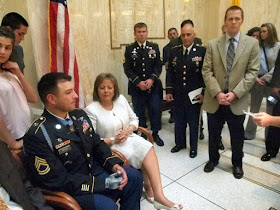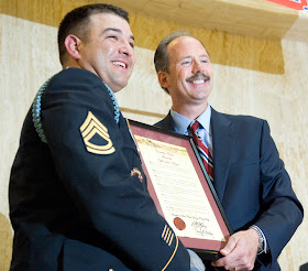 Santa Fe – The latest recipient of the Congressional Medal of Honor, Army Sergeant First Class Leroy Petry, a native of Santa Fe, was welcomed to the Capitol by Governor Susana Martinez, July 29, 2011.