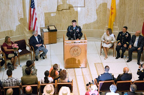 Governor Susana Martinez presented him with the New Mexico flag that flew over the Capitol on July 12, the day he received the medal from President Barak Obama during a White House ceremony.