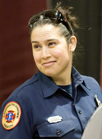 I e-mailed Albuquerque Fire Department’s Public Information Officer Melissa Romero, above, requesting of her to help, “Identify Ranking officers”, in an attached photo: